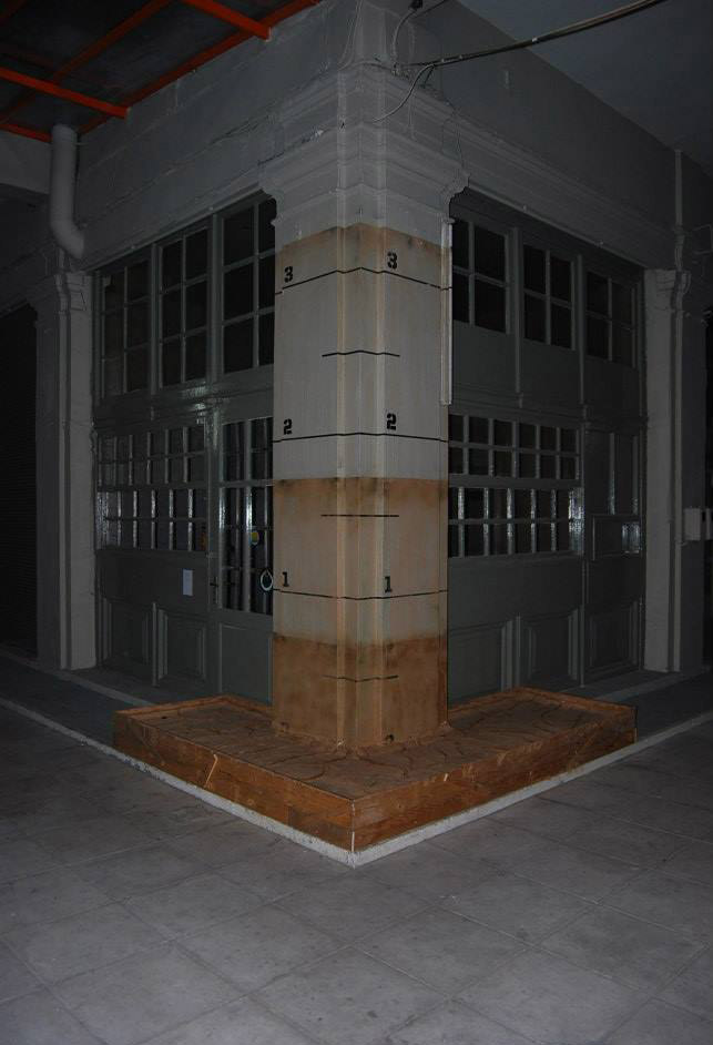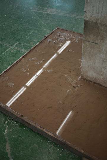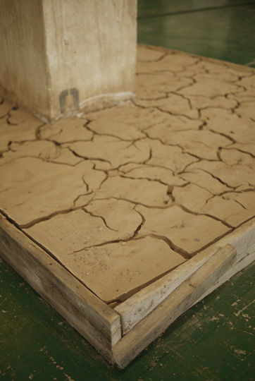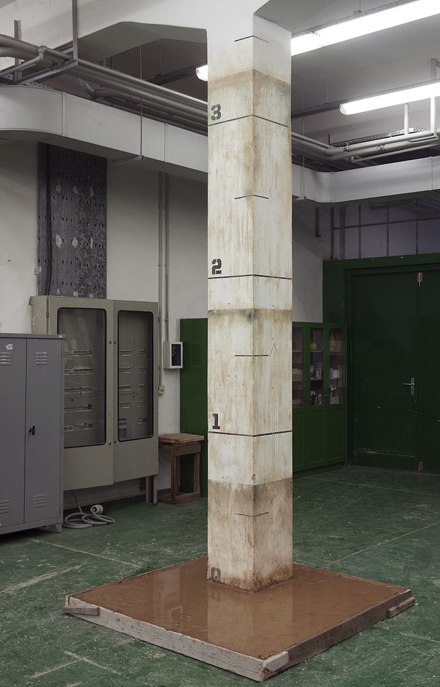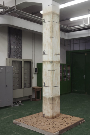 The chronicle of the water level of a lake that has been in this space, or maybe a spatial projection of another place from which this lakes bottom has been carefully transported.