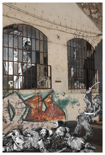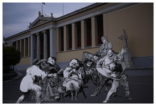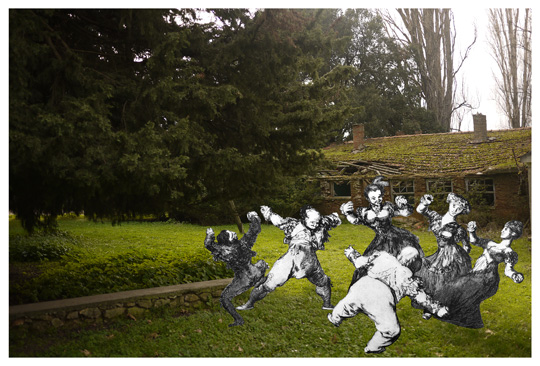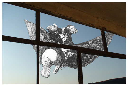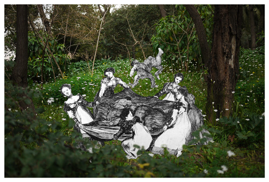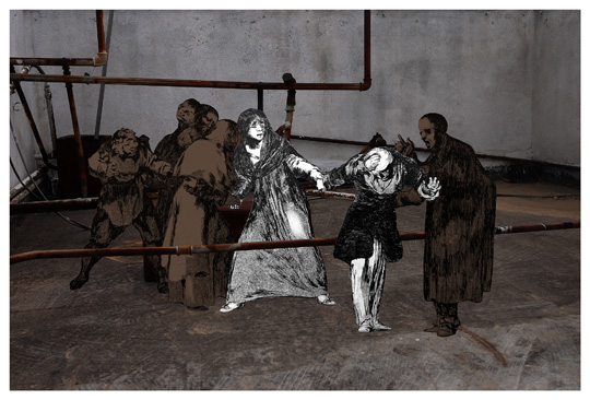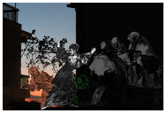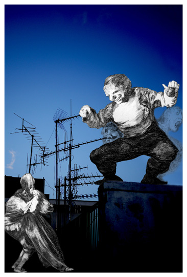 photo montage of Francisco Goyas "disparates" series, on contemporary scenery photos